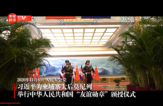 國(guó)家主席習(xí)近平6日在人民大會(huì)堂為柬埔寨太后莫尼列舉行中華人民共和國(guó)“友誼勛章”頒授儀式。