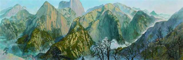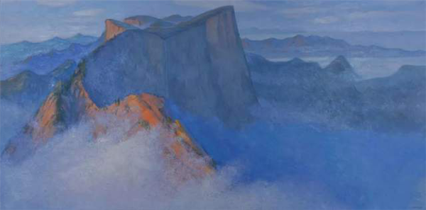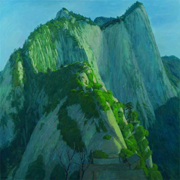 田學(xué)森離開(kāi)繁華的大都市,懷著一顆敬畏自然,與天地精神交流的向往,感受華山的厚重,殉道般的投入創(chuàng)作。甘于寂寞,獨(dú)處華山十年,借鑒傳統(tǒng)山水畫(huà)意境,用油畫(huà)材料技法嘗試為千古華岳寫(xiě)照。