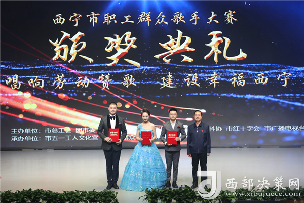 西部決策網(wǎng)訊 11月13日下午,“中國夢•勞動美——唱響勞動贊歌•建設(shè)幸福西寧”西寧市職工群眾歌手大賽正式落下帷幕,本次比賽由市總工會、團市委、市婦聯(lián)、市文聯(lián)、市殘聯(lián)、市工商聯(lián)、市科協(xié)、市紅十字會、市廣播電視臺聯(lián)合主辦,市五一工人文化宮、市職工群眾業(yè)余藝術(shù)團承辦,來自全市各行各業(yè)職工群眾代表300余人參加了頒獎典禮。同時頒獎典禮現(xiàn)場采取直播的方式,獲得13.5萬次點擊、4.1萬個點贊。