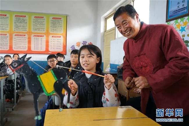 當(dāng)日,在河北省沙河市,當(dāng)?shù)仄び皯蛩嚾俗哌M(jìn)沙河市西油村小學(xué),為學(xué)生們展演皮影藝術(shù)、傳授技藝。今年以來,河北省沙河市積極開展“非遺進(jìn)校園”活動(dòng),組織沙河皮影戲、孔明鎖、孫氏太極拳等非遺項(xiàng)目進(jìn)校園活動(dòng)80多場。