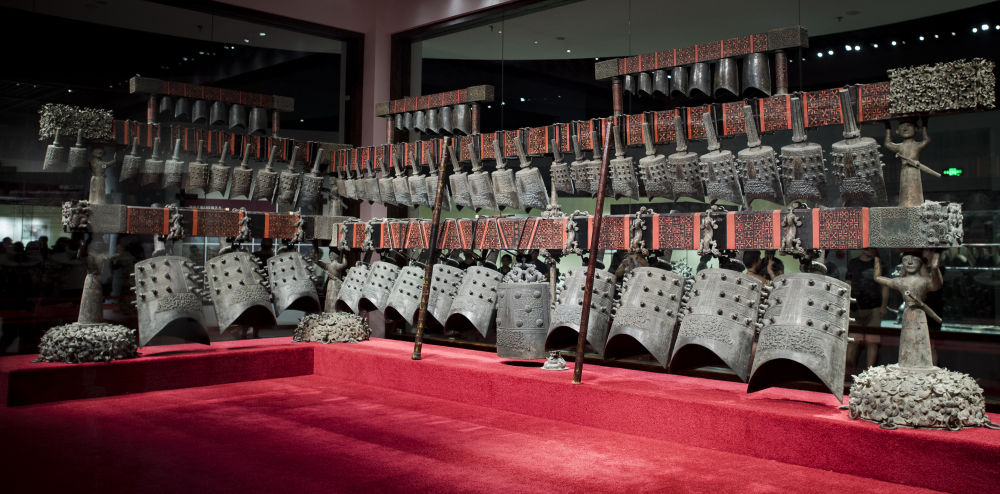 2018年8月17日,在湖北省博物館拍攝的曾侯乙編鐘。(新華社記者 肖藝九 攝)