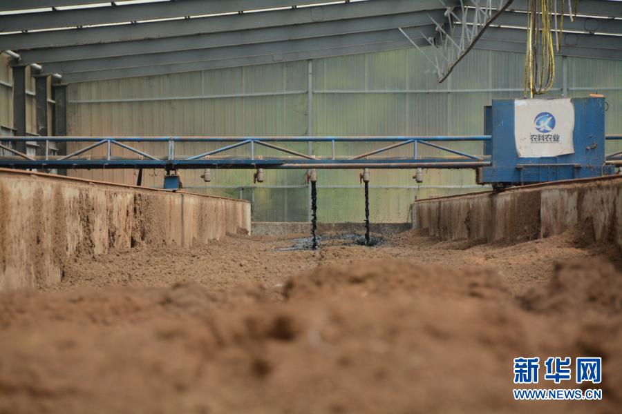 在福建省福清市永誠華多種豬公司豬場內(nèi),半自動化機械將收集的養(yǎng)殖糞污噴灑至墊料上。這是福建首創(chuàng)的“異位發(fā)酵床”技術,發(fā)酵后的糞污可以作為有機肥源,并可以讓養(yǎng)殖場實現(xiàn)污染“零排放”(2019年8月12日攝)。新華社記者 林超 攝