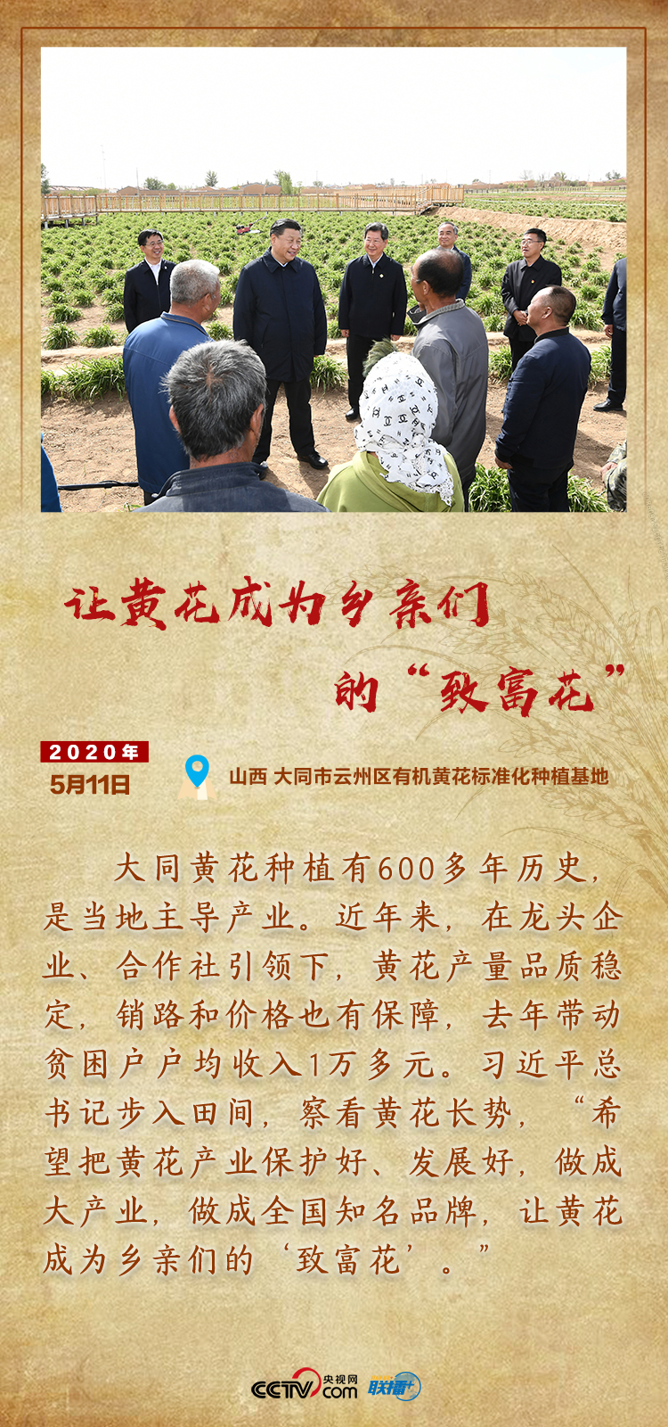 “腳下沾有多少泥土,心中就沉淀多少真情。”總書(shū)記在收官之年帶領(lǐng)大家努力克服疫情影響,攻堅(jiān)克難,凝心聚力打贏脫貧攻堅(jiān)戰(zhàn)。央視網(wǎng)《聯(lián)播+》特梳理總書(shū)記今年的扶貧足跡,與您一同感受人民領(lǐng)袖的扶貧真情。