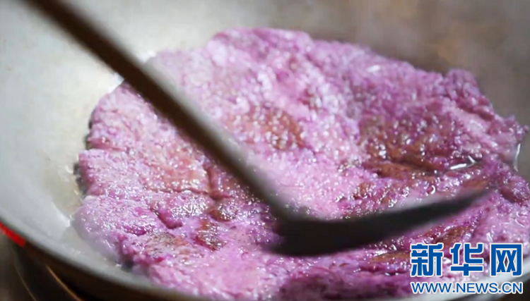 米酒的香醇和紫板薯的濃香撲鼻而來,