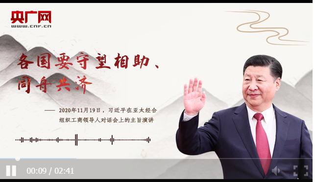這段話出自2020年11月19日習近平在亞太經(jīng)合組織工商領導人對話會上的主旨演講。
