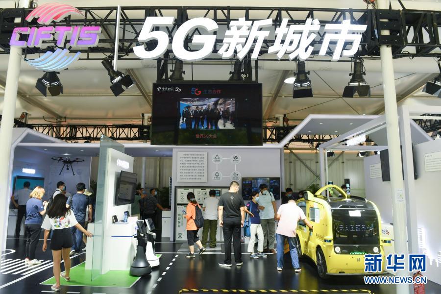 觀眾在2020年中國(guó)國(guó)際服務(wù)貿(mào)易交易會(huì)5G通信服務(wù)專(zhuān)題展區(qū)參觀(9月7日攝)。新華社記者 魯鵬 攝