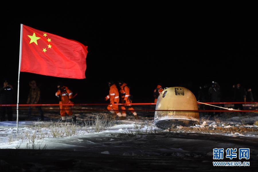 2020年12月17日凌晨,嫦娥五號返回器攜帶月球樣品,采用半彈道跳躍方式再入返回,在內蒙古四子王旗預定區(qū)域安全著陸。新華社記者 連振 攝