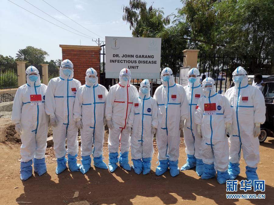 2020年8月21日,中國抗疫醫(yī)療專家組成員在南蘇丹首都朱巴的一處新冠肺炎治療機構留影。新華社發(fā)(中國駐南蘇丹大使館供圖)