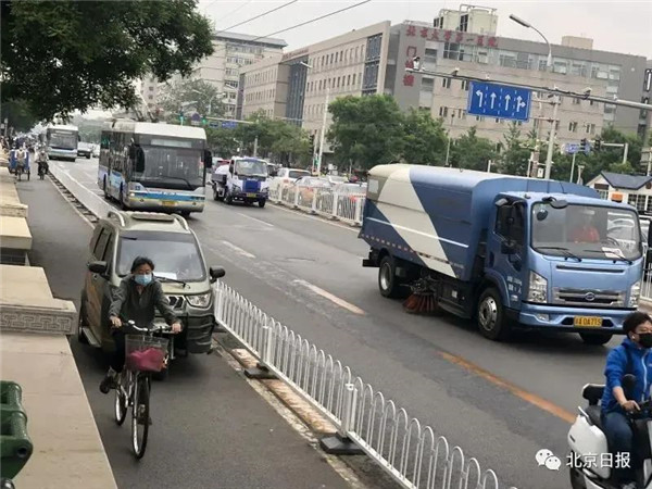 ▲一處非機(jī)動(dòng)車道上,不時(shí)有老年代步車駛過。圖片來源:北京日?qǐng)?bào)
