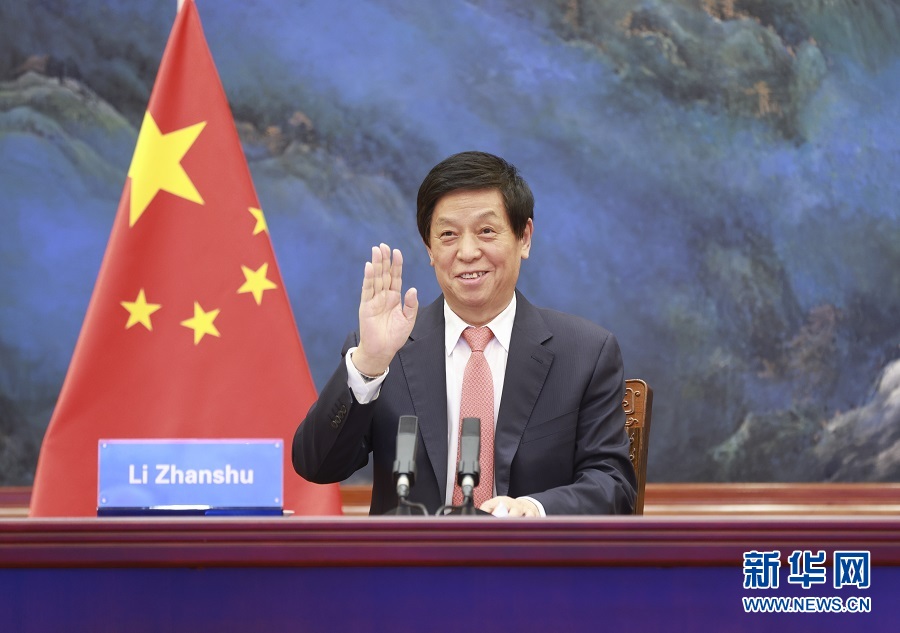 1月18日,全國人大常委會委員長栗戰(zhàn)書在北京人民大會堂出席全國人大和柬埔寨國會視頻交流活動開幕式。 新華社記者 丁林 攝