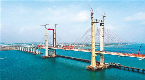 1月25日,由中鐵大橋局承建的湛江調(diào)順跨海大橋成功合龍。全長(zhǎng)約9.36公里的調(diào)順跨海大橋?yàn)閺V東省重點(diǎn)工程,跨越湛江灣連接湛江市調(diào)順島及海東新區(qū),將對(duì)接粵港澳大灣區(qū),對(duì)加快廣東粵西片區(qū)經(jīng)濟(jì)發(fā)展發(fā)揮重要連通作用。新華社記者 劉大偉攝