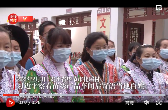 扶貧車間里,一件件精美的手工苗繡服裝、特色小飾品等吸引了總書記的目光。他對大家說:“把苗繡發(fā)揚光大,傳統(tǒng)的也是時尚的。它既是文化又是產(chǎn)業(yè),它既能夠弘揚民族文化、傳統(tǒng)文化,又用產(chǎn)業(yè)來扶貧,用產(chǎn)業(yè)來振興鄉(xiāng)村,可以作出貢獻。”