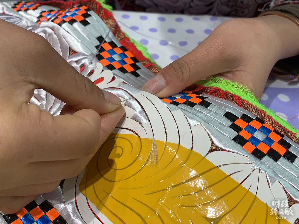 25歲的楊文麗是這家扶貧車間的負(fù)責(zé)人,她的刺繡手藝是從小跟母親學(xué)的。楊文麗告訴《時(shí)政新聞眼》,苗繡分手工繡和機(jī)繡。一件手工繡的“歪梳苗服飾”要賣到上萬(wàn)元。如今,車間的苗繡成品有近70%是通過(guò)直播帶貨銷售出去的。