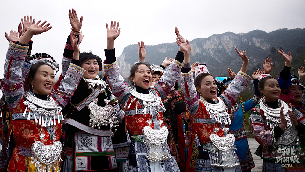 △廣場(chǎng)上熱烈歡迎總書記到訪的苗寨村民(總臺(tái)央視記者張宇、彭漢明、王哈男拍攝)