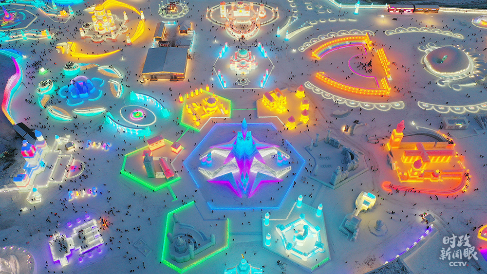 △哈爾濱冰雪大世界打造了中東歐17國主題城堡園區(qū),夜景璀璨,如夢似幻。