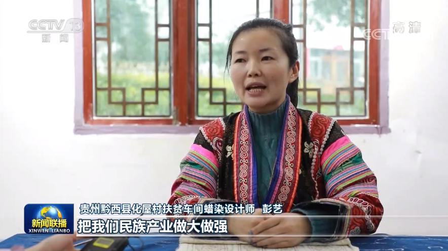 貴州黔西縣化屋村扶貧車(chē)間蠟染設(shè)計(jì)師 彭藝:把我們民族產(chǎn)業(yè)做大做強(qiáng),讓我們苗族同胞的生活,過(guò)得像我們蠟染刺繡一樣精彩。