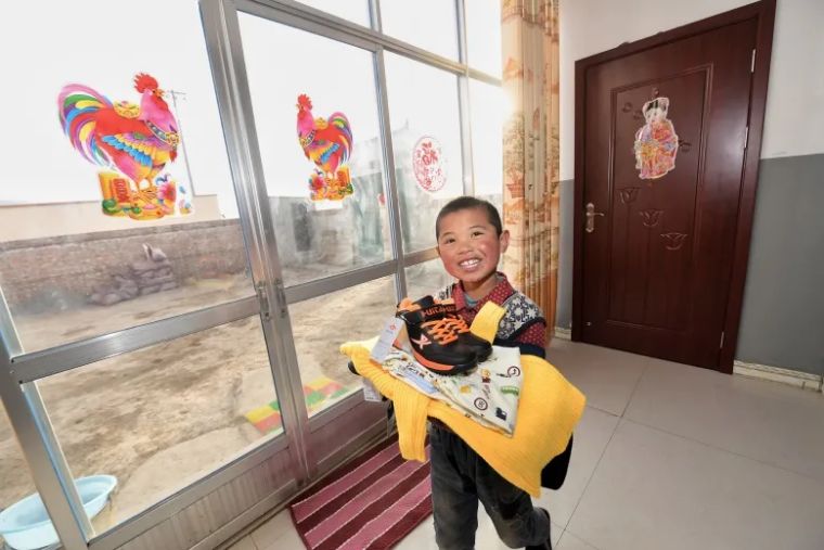 ↑在青海海東市互助縣五十鎮(zhèn)班彥新村,剛剛遷入新居的兒童手捧新買的衣服(2017年1月27日攝)。班彥新村129戶村民原來居住在海拔2800米的山上。脫貧攻堅精準(zhǔn)識別時,這個村貧困發(fā)生率高達(dá)57%。2016年,受益于易地扶貧搬遷政策,村民們整體搬遷到山下統(tǒng)一規(guī)劃、統(tǒng)一建設(shè)的新村。新村水、電、天然氣等一應(yīng)俱全;農(nóng)家樂、扶貧車間等政策的落實,也讓移民們的生活有了保障。