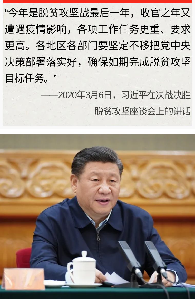 ↑2020年3月6日,習(xí)近平在北京出席決戰(zhàn)決勝脫貧攻堅座談會并發(fā)表重要講話。