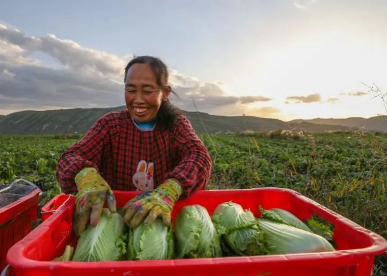 ↑2020年9月7日,農(nóng)民在寧夏回族自治區(qū)西吉縣硝河鄉(xiāng)高原村紅祥蔬菜種植專業(yè)合作社蔬菜種植基地收獲白菜。2020年11月,寧夏回族自治區(qū)政府正式批復(fù)同意西吉縣退出貧困縣序列。至此寧夏全區(qū)9個貧困縣(區(qū))全部實現(xiàn)脫貧摘帽。