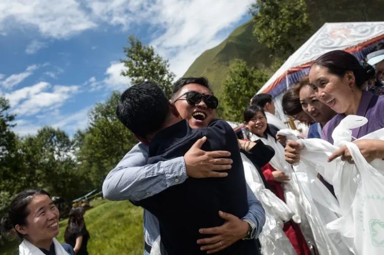 ↑在西藏拉薩市達(dá)孜區(qū),北京大學(xué)腫瘤醫(yī)院的援藏醫(yī)生袁燦(戴墨鏡者)與送別的藏族同事?lián)肀В?020年8月1日攝)。2015年以來,北京援藏醫(yī)療隊以“組團(tuán)式”醫(yī)療援藏為抓手,幫助拉薩市人民醫(yī)院新建了急診科、重癥醫(yī)學(xué)科等12個學(xué)科,推動當(dāng)?shù)蒯t(yī)療事業(yè)發(fā)生格局性變化。如今,“組團(tuán)式”醫(yī)療援助已經(jīng)成為北京在助力脫貧攻堅戰(zhàn)中一張閃亮的名片。