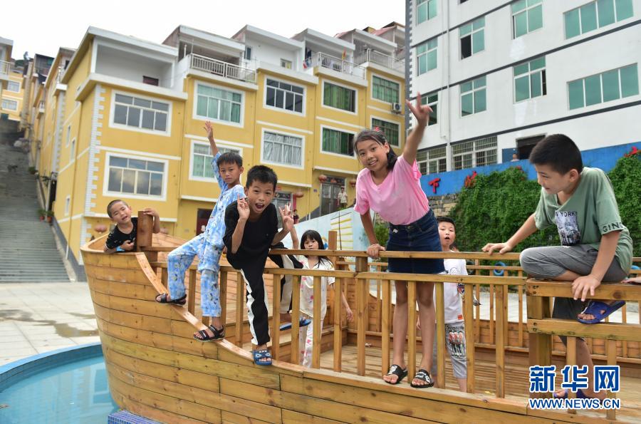 2019年8月22日,福建省福安市下岐村小朋友在下岐漁民廣場(chǎng)前玩耍。新華社記者 林善傳 攝