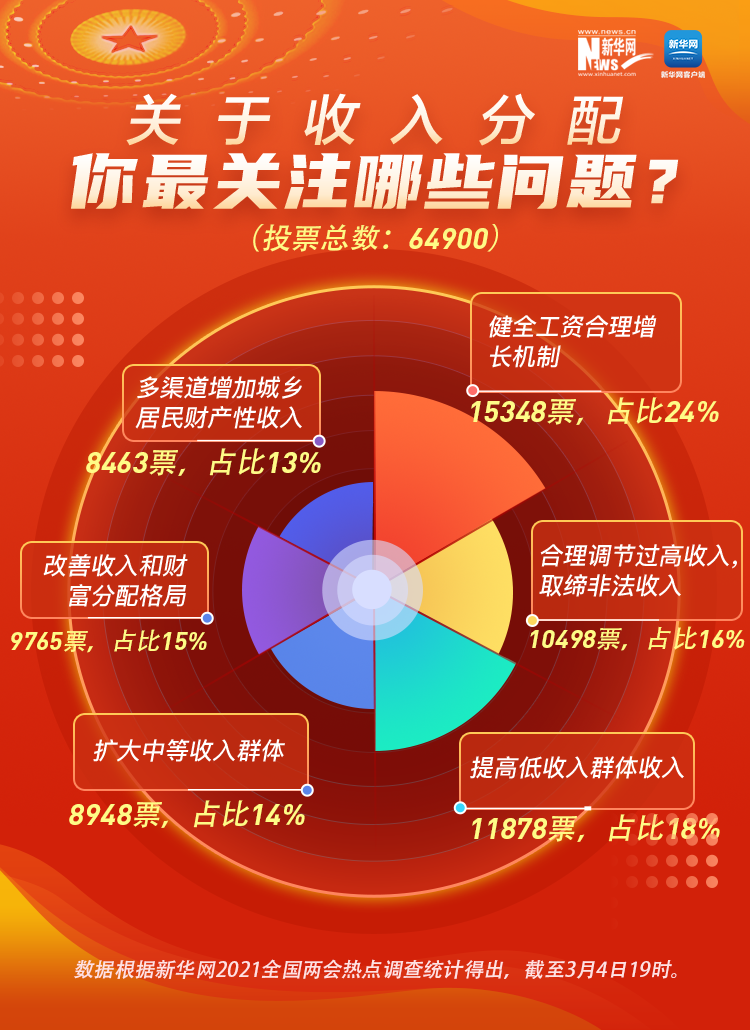 民之所望,政之所向。全國政協(xié)十三屆四次會議3月4日在北京開幕,2021年全國兩會正式開啟。今年你最關(guān)心什么事?在新華網(wǎng)前期推出的2021全國兩會熱點(diǎn)調(diào)查中,收入分配、鄉(xiāng)村振興、“十四五”規(guī)劃、疫情防控、就業(yè)創(chuàng)業(yè)、養(yǎng)老保障等成為網(wǎng)民關(guān)注的熱點(diǎn)話題。