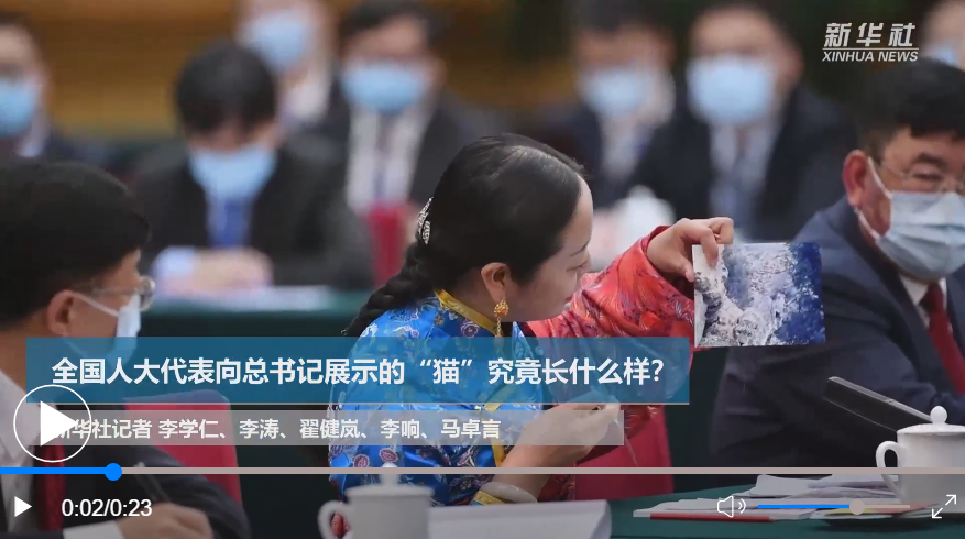 在會議現場,全國人大代表、青海省海北藏族自治州門源回族自治縣教育局教研室副主任孔慶菊拿出兩張照片,向習總書記展示了兩種可愛的“貓”。