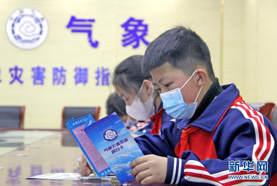 3月22日,河北省柏鄉(xiāng)縣南關(guān)小學(xué)的學(xué)生在學(xué)習(xí)氣象知識(shí)。新華社發(fā)(李雪其 攝)