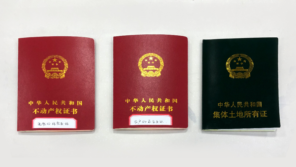 △陳列在沙縣農(nóng)村產(chǎn)權(quán)交易中心的流轉(zhuǎn)經(jīng)營權(quán)證、承包權(quán)證和集體土地所有證。(總臺(tái)央視記者許永松拍攝)
