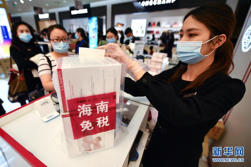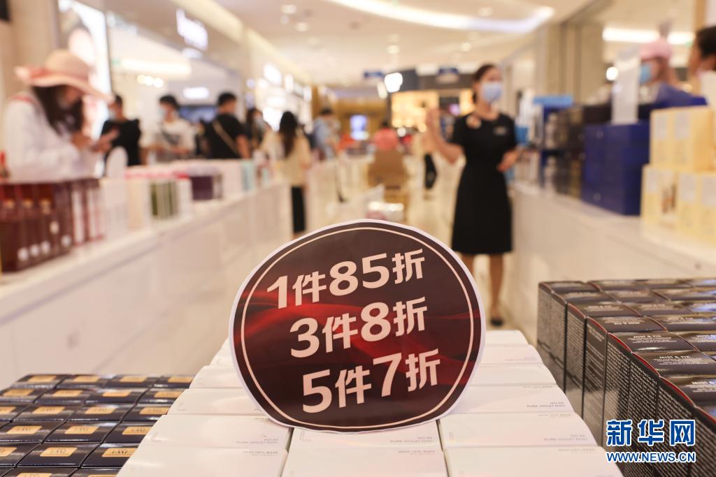 3月25日,消費(fèi)者在海口日月廣場(chǎng)免稅店購(gòu)物。新華社記者 張麗蕓 攝