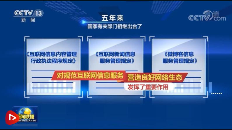 五年來,國家有關(guān)部門相繼出臺(tái)了《互聯(lián)網(wǎng)信息內(nèi)容管理行政執(zhí)法程序規(guī)定》《互聯(lián)網(wǎng)新聞信息服務(wù)管理規(guī)定》《微博客信息服務(wù)管理規(guī)定》等一系列法規(guī),對(duì)規(guī)范互聯(lián)網(wǎng)信息服務(wù)、營造良好網(wǎng)絡(luò)生態(tài)發(fā)揮了重要作用,正能量高揚(yáng),網(wǎng)絡(luò)環(huán)境日漸清朗。