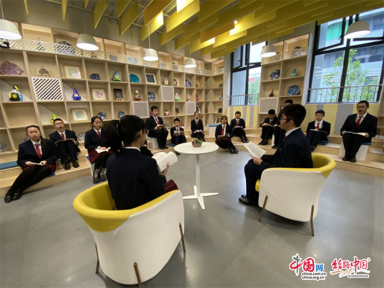 隨后,媒體代表們參觀了學(xué)校思維碰撞、巖彩壁畫、未來校園、牛仔花園等特色展區(qū)。在學(xué)校朗讀角,七年級(jí)的張語(yǔ)桐手捧一本《失群之鳥》詩(shī)集,看得入迷。她喜歡看科幻小說和人物傳記,開放的讀書角就成了她和小伙伴常來的地方,位于教室另一個(gè)側(cè)的“思維碰撞”讀書分享區(qū),也隨時(shí)可以跟同學(xué)們交流讀書心得。