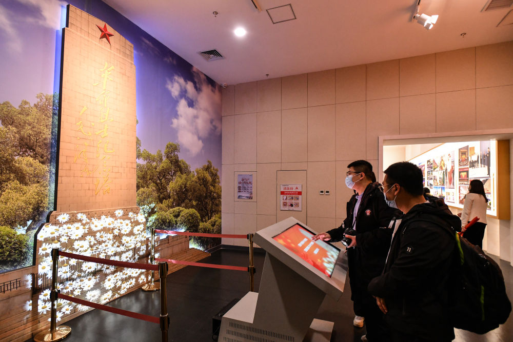 ↑2021年4月2日,參觀者在山東濟(jì)南戰(zhàn)役紀(jì)念館內(nèi)學(xué)習(xí)黨史、緬懷先烈。