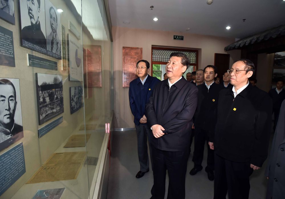 ↑2016年4月24日,習(xí)近平在安徽六安市金寨縣參觀金寨縣革命博物館。