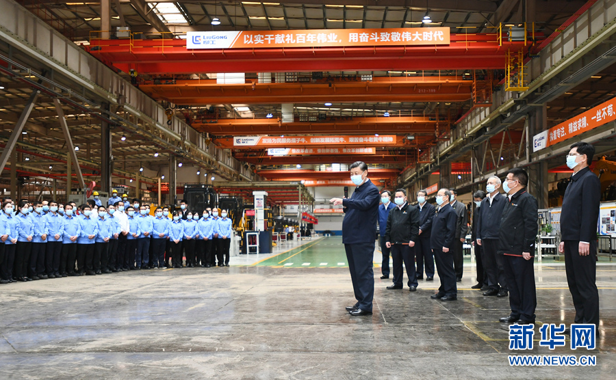 當(dāng)天下午,習(xí)近平來到柳州市考察調(diào)研。在廣西柳工集團(tuán)有限公司,習(xí)近平先后走進(jìn)公司展廳、研發(fā)實驗中心、挖掘機(jī)裝配廠等,聽取企業(yè)發(fā)展情況介紹,察看主要產(chǎn)品展示,同企業(yè)職工和技術(shù)研發(fā)人員親切交談。習(xí)近平強(qiáng)調(diào),制造業(yè)高質(zhì)量發(fā)展是我國經(jīng)濟(jì)高質(zhì)量發(fā)展的重中之重,建設(shè)社會主義現(xiàn)代化強(qiáng)國、發(fā)展壯大實體經(jīng)濟(jì),都離不開制造業(yè),要在推動產(chǎn)業(yè)優(yōu)化升級上繼續(xù)下功夫。只有創(chuàng)新才能自強(qiáng)、才能爭先,要堅定不移走自主創(chuàng)新道路,把創(chuàng)新發(fā)展主動權(quán)牢牢掌握在自己手中。要堅持黨對國有企業(yè)的全面領(lǐng)導(dǎo),堅持加強(qiáng)黨的領(lǐng)導(dǎo)和完善公司治理相統(tǒng)一,在深化企業(yè)改革中搞好黨的建設(shè),充分發(fā)揮黨組織在企業(yè)改革發(fā)展中的領(lǐng)導(dǎo)核心作用。