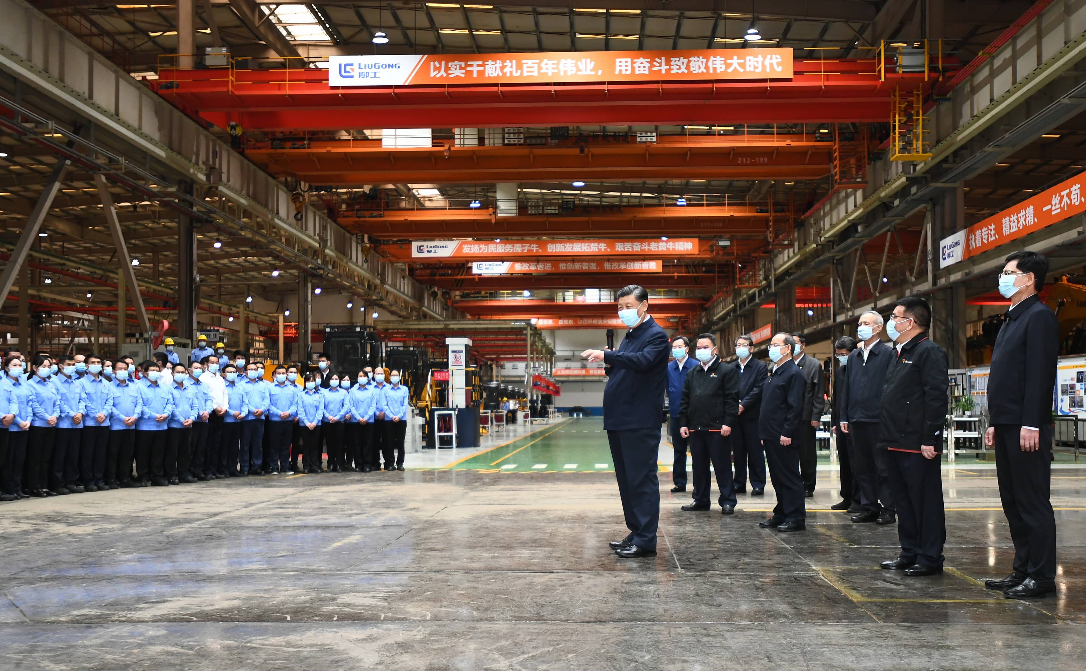↑4月26日,中共中央總書記、國家主席、中央軍委主席習(xí)近平來到廣西柳工集團有限公司考察調(diào)研。