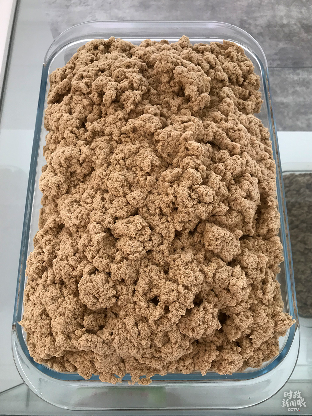△這是車間里30:1的艾絨,表示30斤艾葉出1斤艾絨,前面的數(shù)字越大,制成的艾條純度越高。(總臺(tái)央視記者石偉明拍攝)
