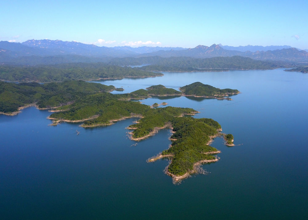 ↑南水北調(diào),讓北京“大水缸”——密云水庫蓄水量大增,水質(zhì)長期保持國家地表水環(huán)境質(zhì)量Ⅱ類標(biāo)準(zhǔn)。這是密云水庫風(fēng)光(無人機照片,2020年9月1日攝)。