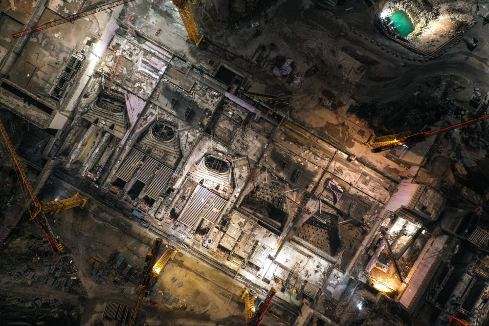 ↑大藤峽水利樞紐位于廣西桂平市西江流域上的黔江河段,是國務(wù)院確定的172項節(jié)水供水重大水利工程的標(biāo)志性工程。這是工程夜間建設(shè)現(xiàn)場(無人機照片,1月15日攝)。