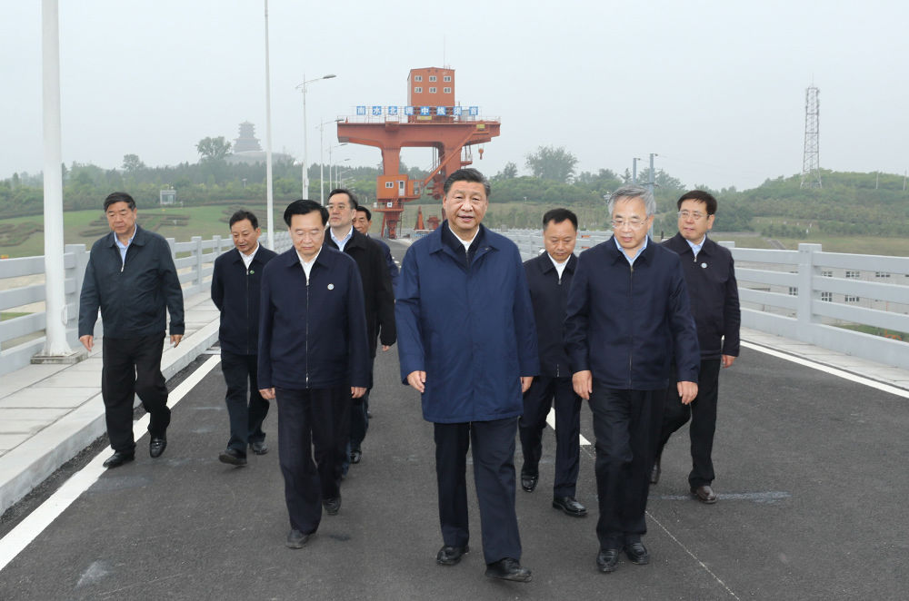 ↑5月13日下午,習(xí)近平在南陽市淅川縣陶岔渠首樞紐工程考察。