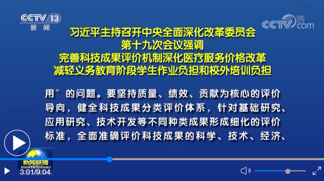 完善科技成果評價機制深化醫(yī)療服務(wù)價格改革 減輕義務(wù)教育階段學(xué)生作業(yè)負擔(dān)和校外培訓(xùn)負擔(dān)