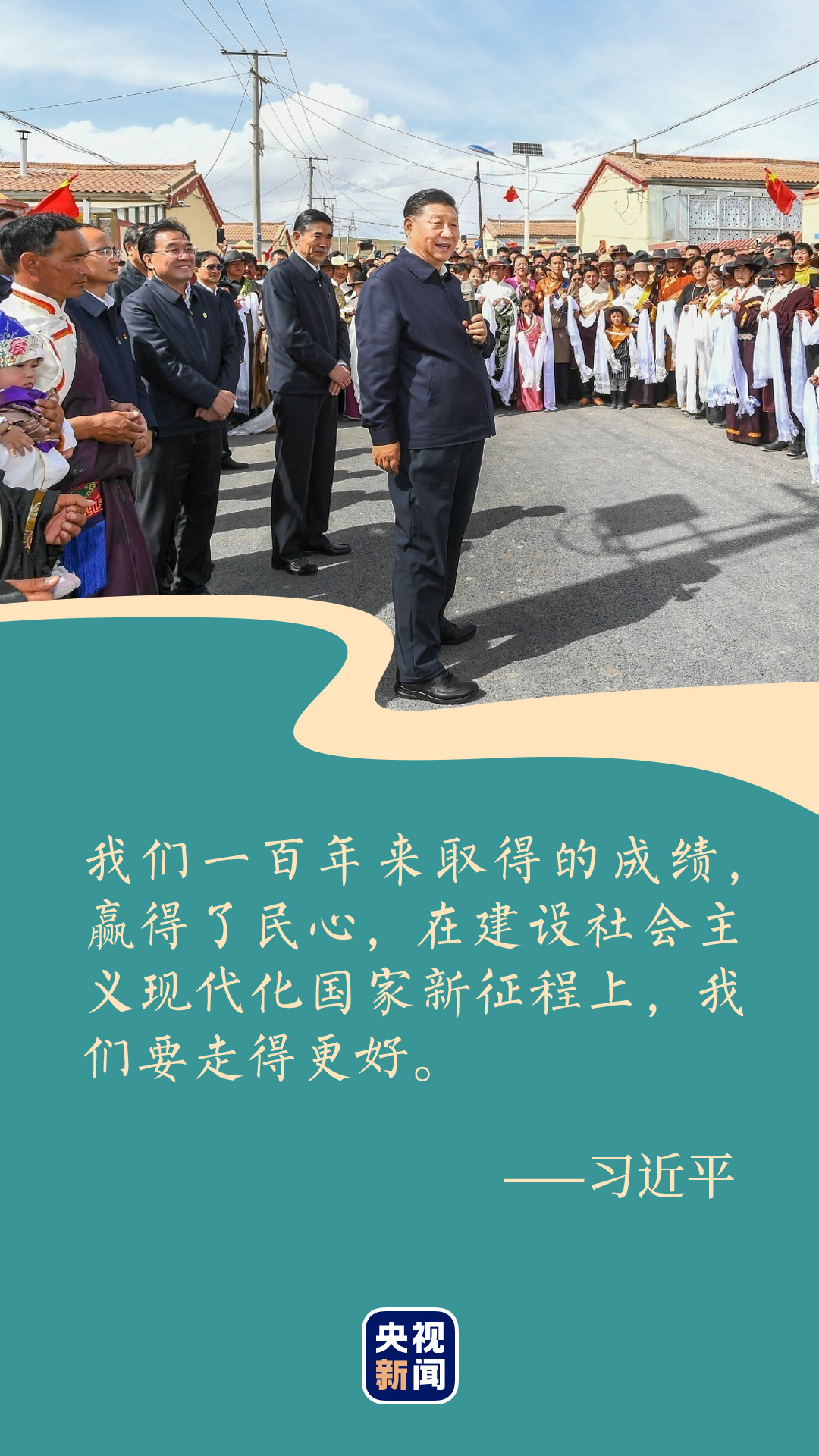 總書記走進(jìn)牧民索南才讓家中,看望慰問藏族群眾。索南才讓說,牧民生活好,全靠黨的政策好,衷心感謝黨、衷心感謝總書記。習(xí)近平深情地說,我們黨成立一百年了,為什么老百姓衷心擁護(hù)中國共產(chǎn)黨?因?yàn)槲覀凕h始終全心全意為人民服務(wù)、為各民族謀幸福。