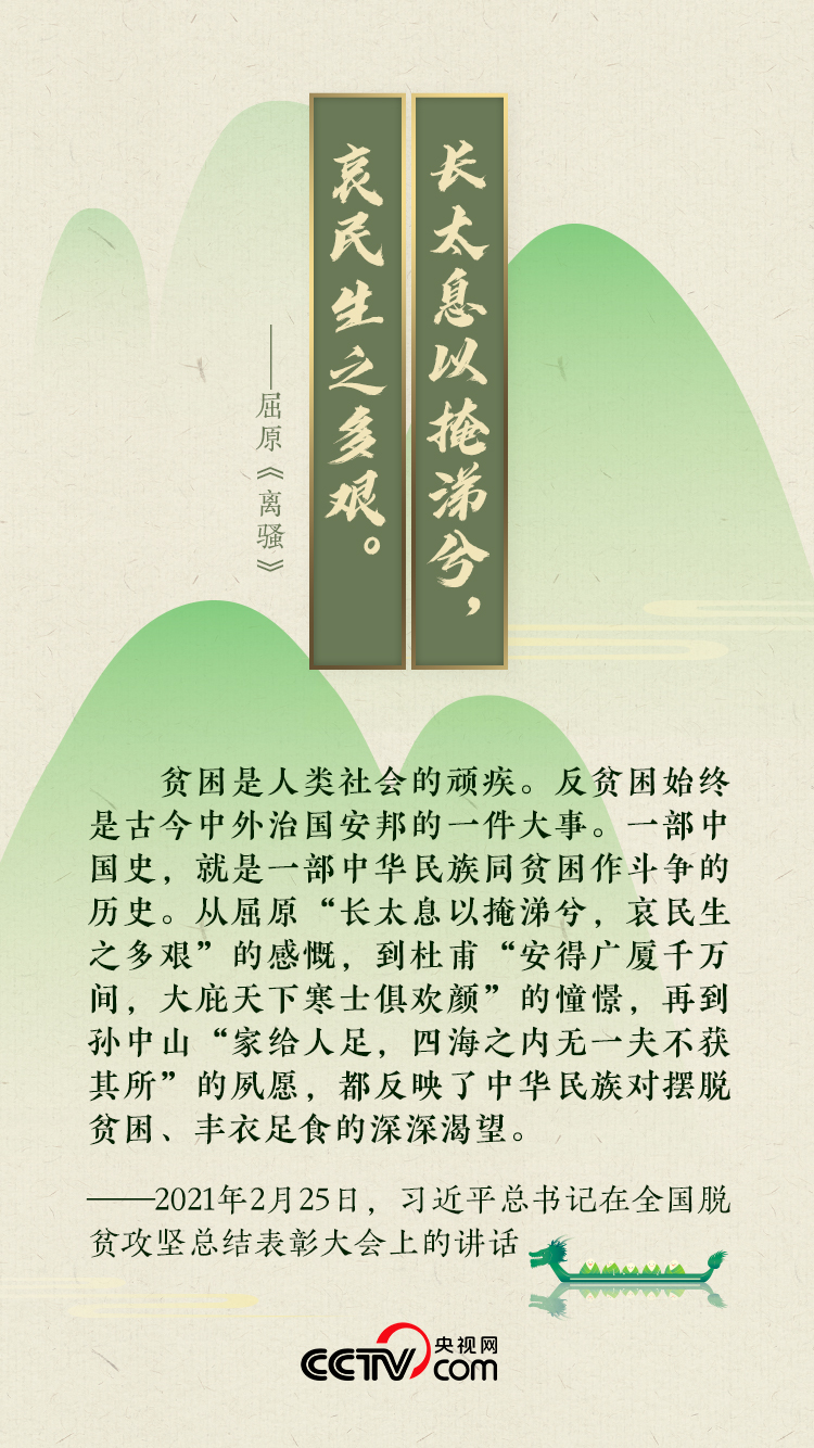 2021年2月25日,習(xí)近平總書記在全國(guó)脫貧攻堅(jiān)總結(jié)表彰大會(huì)上吟誦屈原悲嘆民生不興的詩句“長(zhǎng)太息以掩涕兮,哀民生之多艱”。