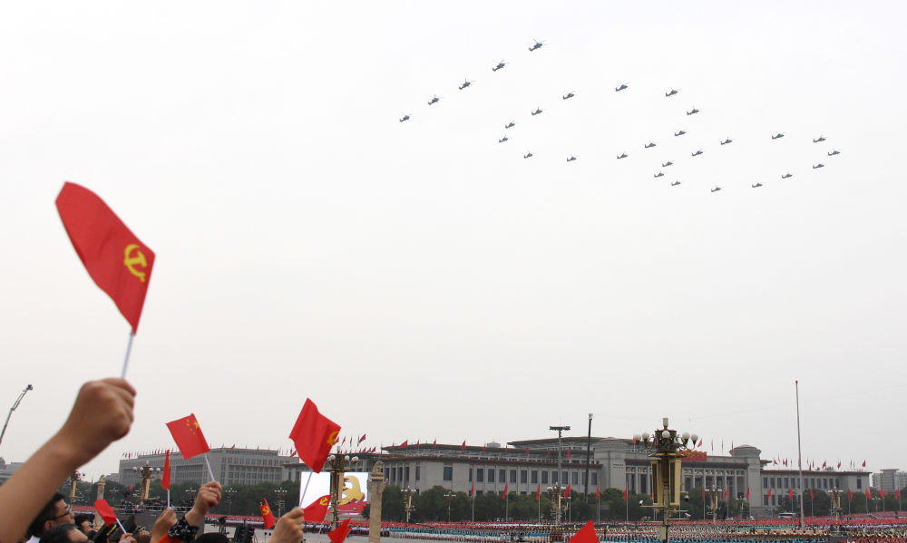 7月1日上午,慶祝中國共產(chǎn)黨成立100周年大會在北京天安門廣場隆重舉行。這是飛行慶祝表演。新華社記者 李欣 攝
