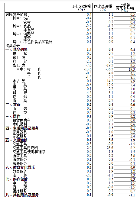 一、各類商品及服務(wù)價格同比變動情況