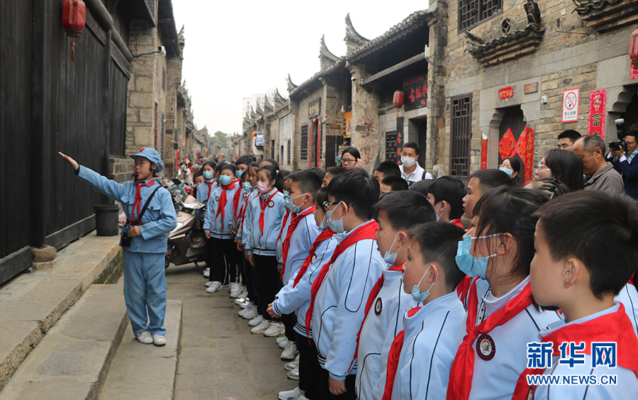 圖為紅安縣將軍城小學“小小紅色講解員”假期義務講解家鄉(xiāng)紅色歷史。新華網(wǎng)發(fā)