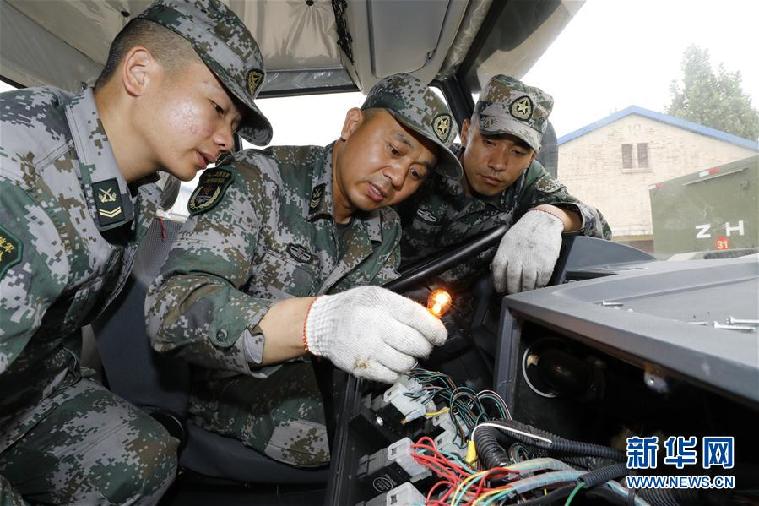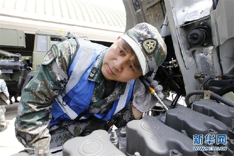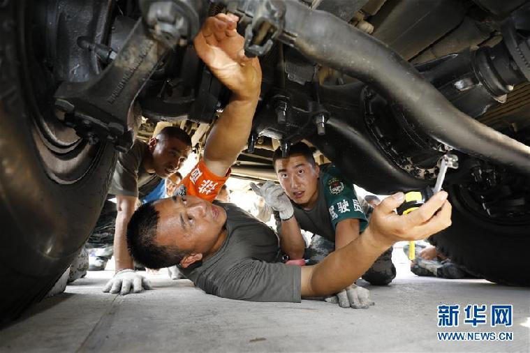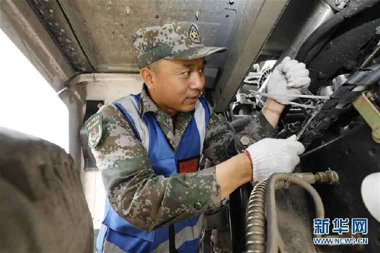 聯(lián)勤保障部隊某團修理技師張俊凱在檢修車輛(2019年6月5日攝)。 新華社發(fā)(曾曾 攝)