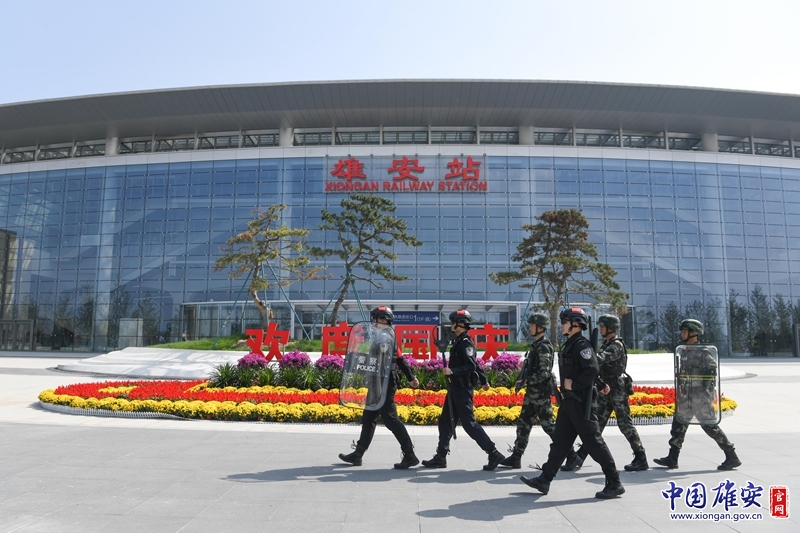 雄安站樞紐片區(qū)公安分局和武警河北總隊(duì)保定支隊(duì)某部正在進(jìn)行聯(lián)合巡邏。任雙歡 攝