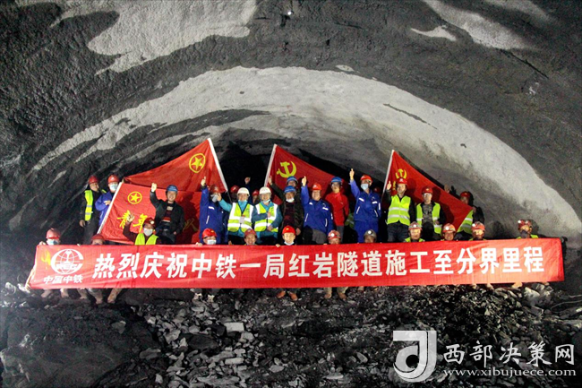 建設(shè)者歡慶隧道掘進(jìn)至分界里程