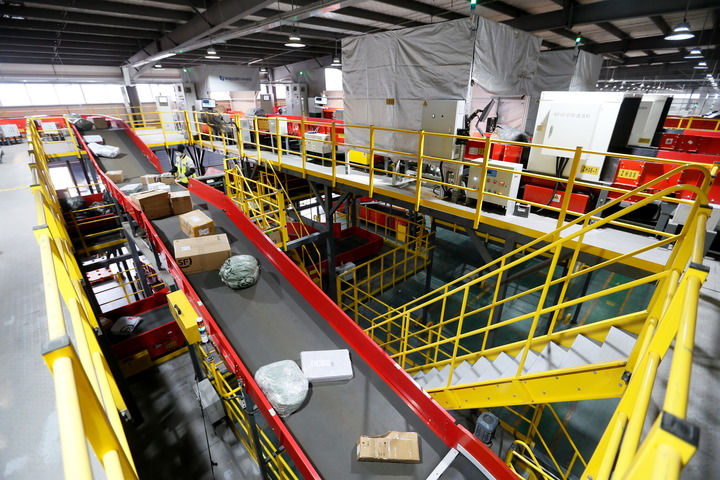 “雙11”期間,青島某物流分撥中心,全自動智能分揀系統(tǒng)正在分揀包裹。新華社發(fā)(梁孝鵬 攝)